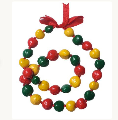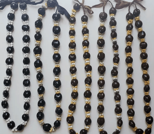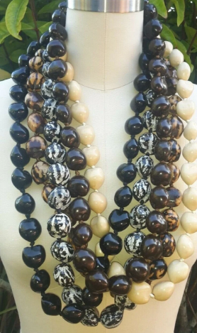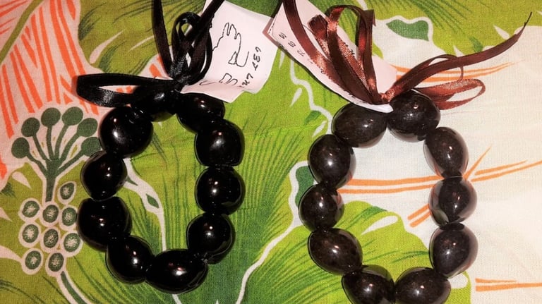 A kukui nut lei is a traditional Hawaiian necklace made from the polished seeds of the kukui tree.